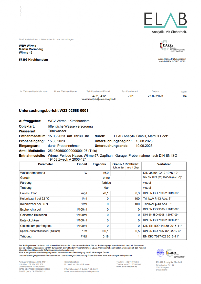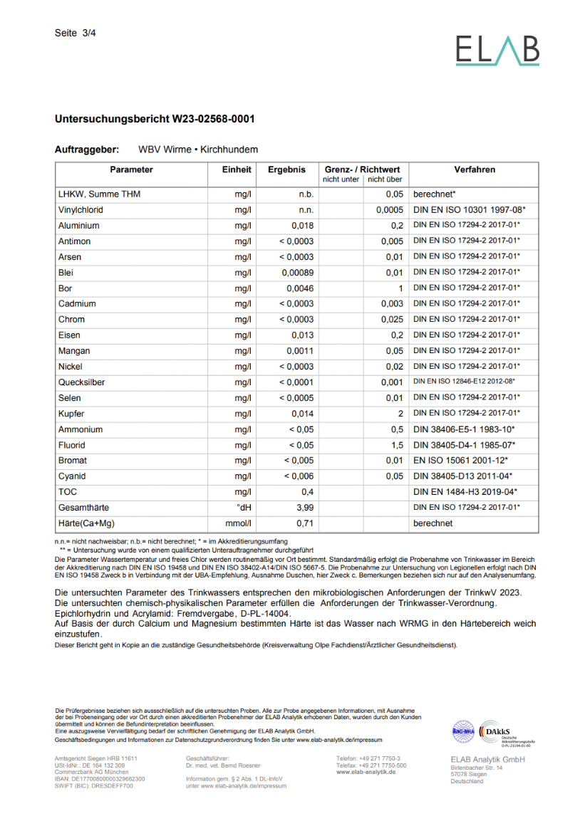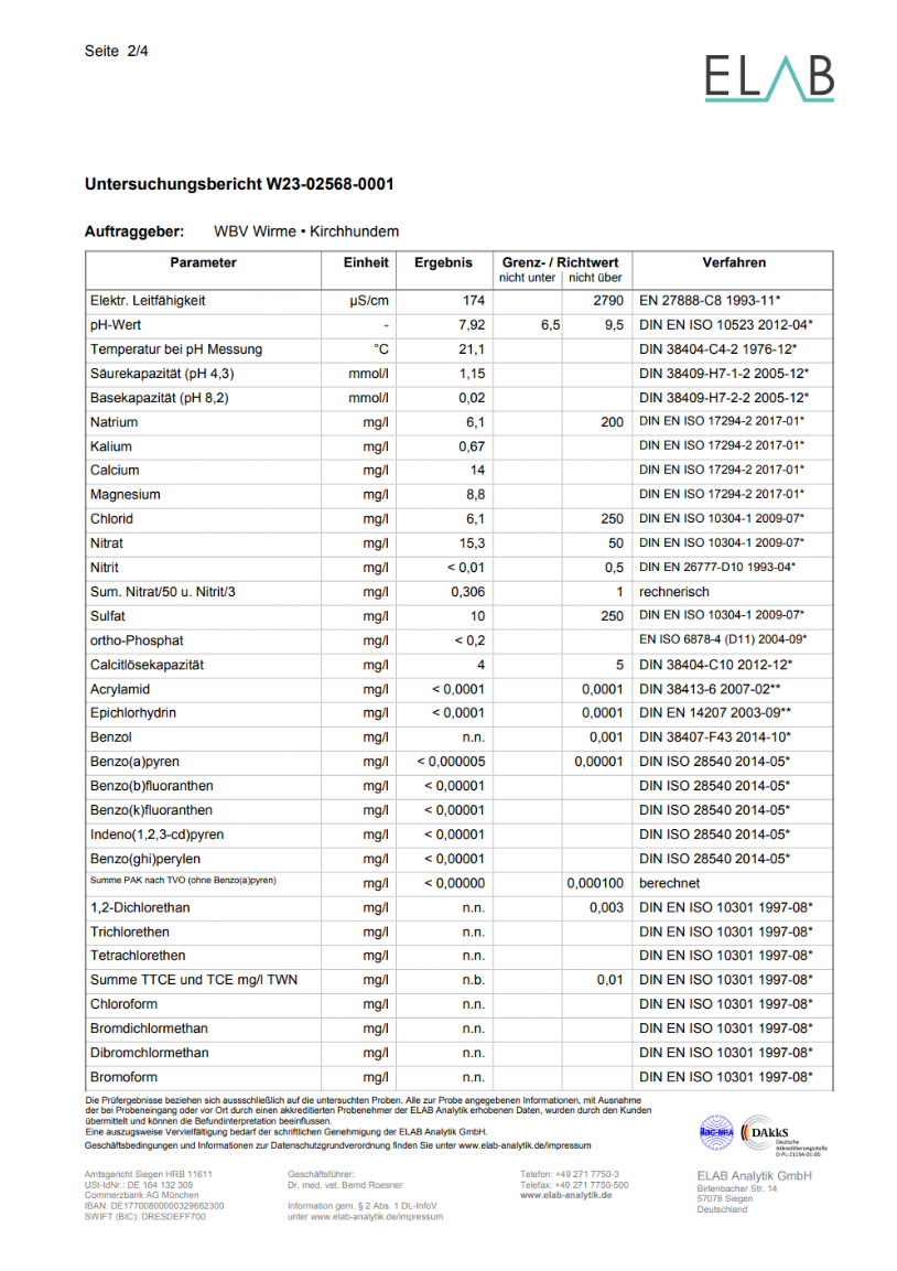 Auszug vom Untersuchungsbericht zum Wirmer Wasser