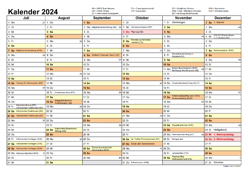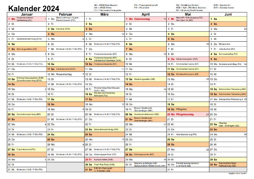 Veranstaltungskalender der örtlichen Vereine für 2024